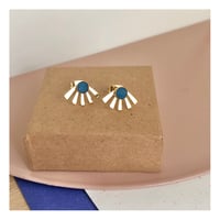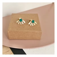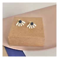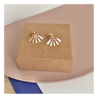 Les discrètes puces Emmy se portent au quotidien. Leur forme en éventail borde le lobe de l'oreille avec une touche de couleur.